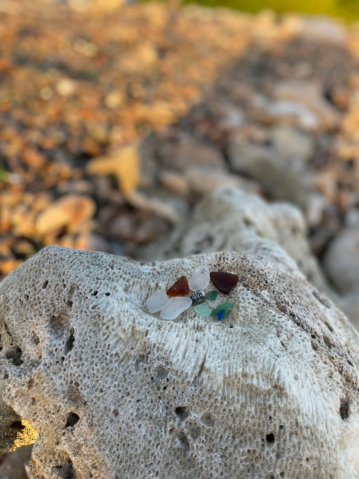 Over decades, powerful waves, coarse sand, and saltwater wore away the sharp edges, reshaping the discarded remnants into smooth, frosted jewels. Today, those same fragments — now known as sea glass — glimmer along the island’s shore in hues of jade green, sapphire blue, deep amber, and even rare lavender.